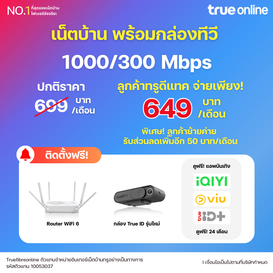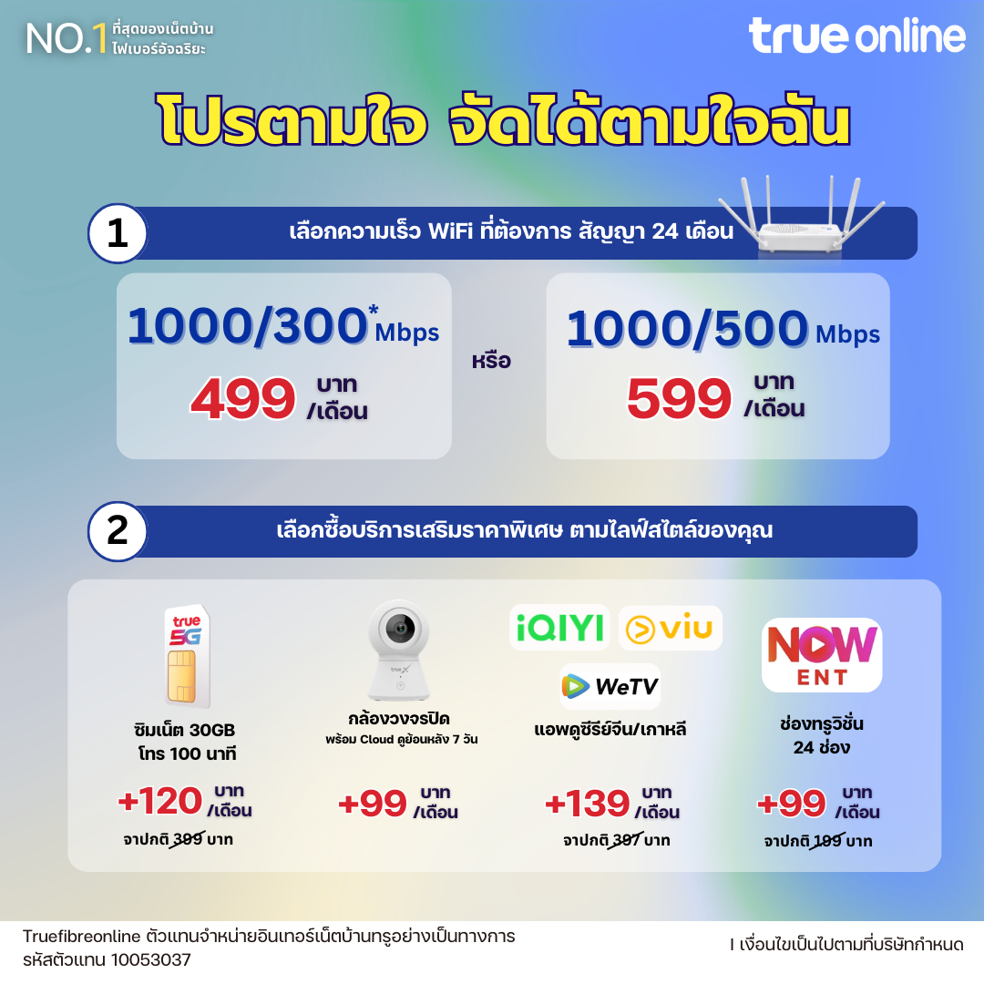 ติดตั้งเน็ตบ้านทรู เริ่มต้นเพียง 499 บาท